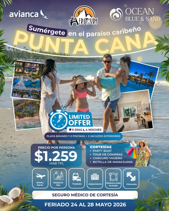 · Boleto aéreo en la ruta Quito – Bogotá-Punta Cana –Bogotá- Quito en aerolínea AVIANCA