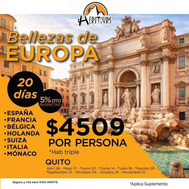· Visita Panorámica en: Madrid, Paris, Amsterdam, Bruselas, Venecia, Roma, Barcelona.