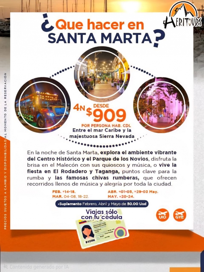 ● Boleto aéreo en la ruta Quito o Guayaquil – Santa Marta – Guayaquil o Quito (Vía Bogota)